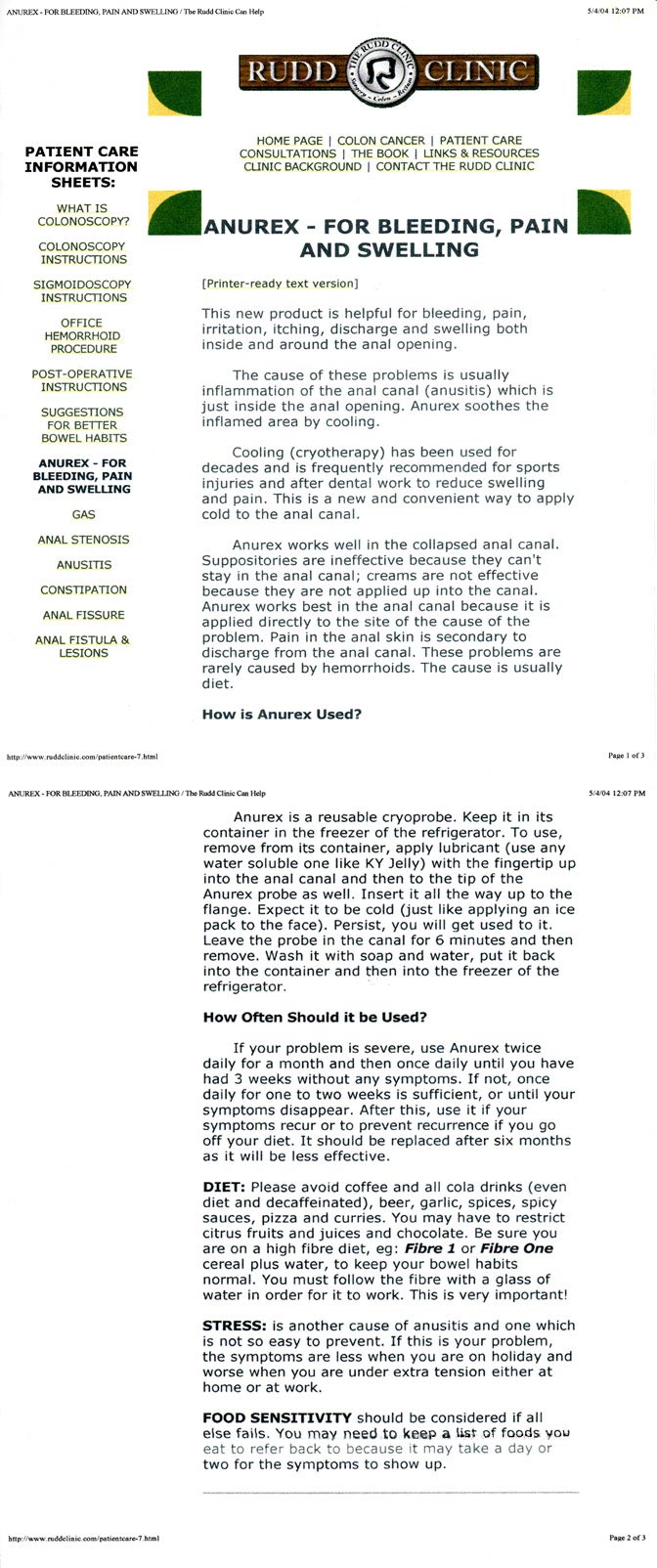 Anurex was officially registered with U.S.A. Dept. of Commerce in 1986 and featured in many publications and Trade Shows (worldwide) sponsored by that Department. ANUREX is the only available product of its kind on the market with proven efficacy and safety supported and documented by Controlled Clinical studies (and not just testimonials) published in MAJOR Medical Journals. Clinical trials proved Anurex to be effective in 85-95% in all patients. Anurex has been widely accepted and recommended by doctors, pharmacists, Health professionals and Medical Media continuously informing hemorrhoid suffers about this...